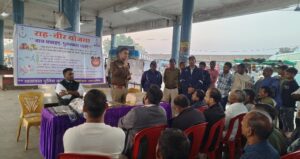 बस स्टैंड में राह-वीर योजना का प्रचार, पुलिस ने आमजन को किया जागरूक