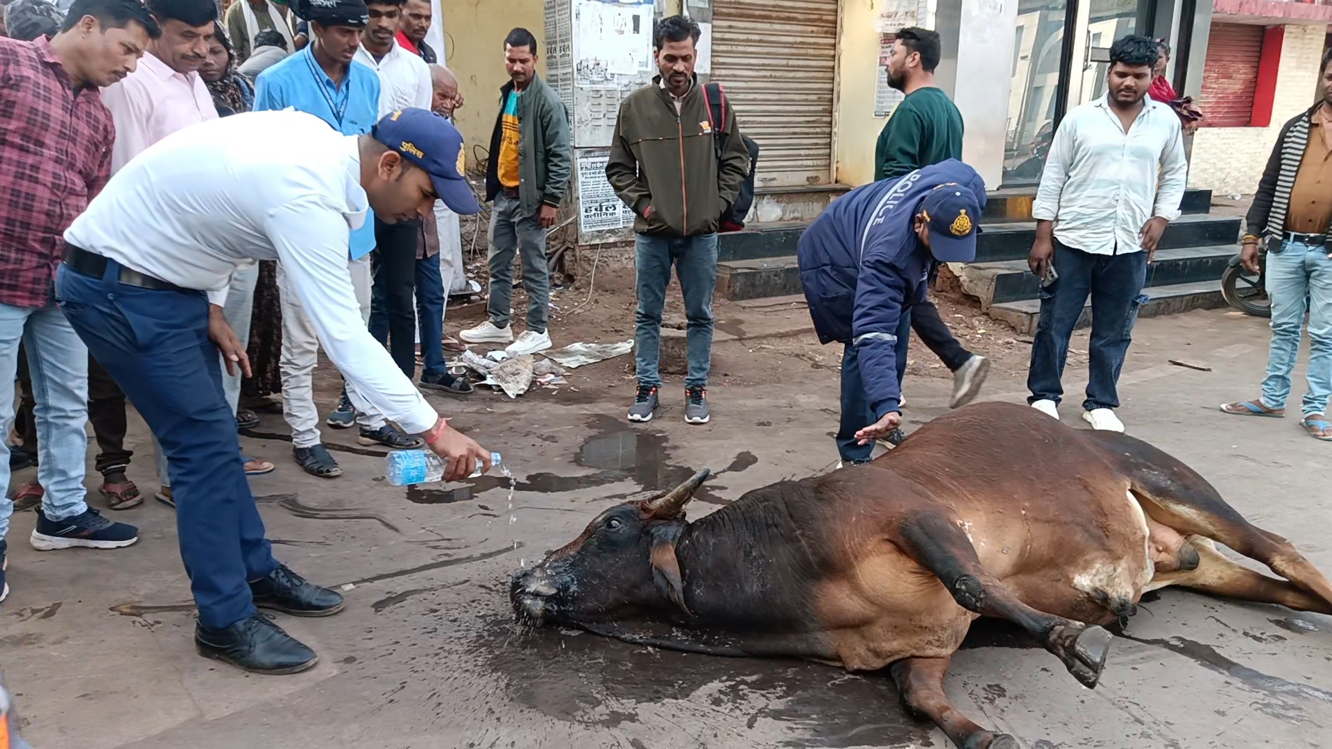 ट्रैफिक कर्मी मंजय ने दिखाया जीवों के प्रति करुणा का भाव, घायल शांड को पिलाया पानी