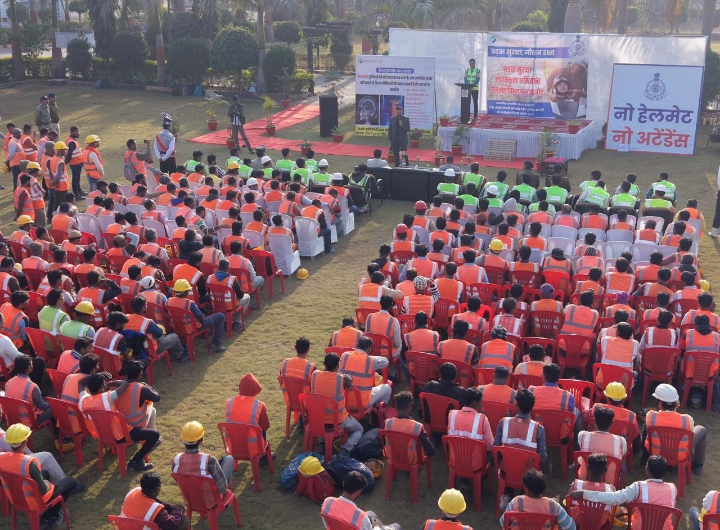 सड़क सुरक्षा अभियान: JK Cement ने अपनाई ‘NO HELMET, NO ATTENDANCE’ नीति, बिना हेलमेट प्रवेश पर रोक
