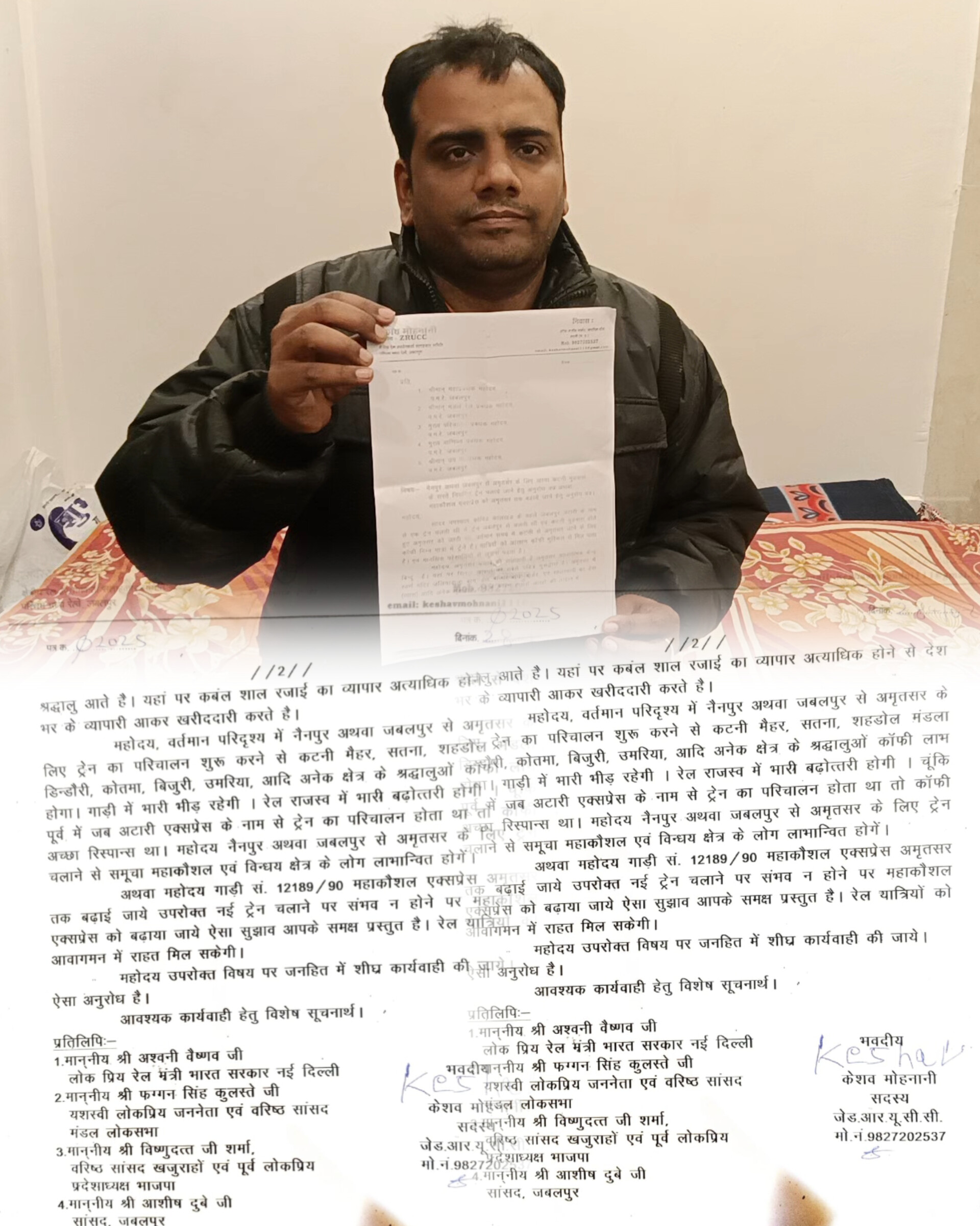 कटनी–अमृतसर रेल सेवा बहाली की माँग तेज, ZRUCC सदस्य ने जीएम से की पहल